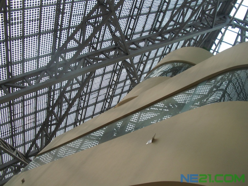 尚德投资6480万元拟在江苏省无锡市新区光伏产业园尚能项目中建设总装机容量为1MWp的太阳能光伏并网发电系统。其中,BIPV幕墙组件约310kWp,常规组件690kWp。BIPV幕墙组件按常规玻璃幕墙的安装方式进行安装;常规组件全部在楼顶部以固定支架的方式安装。全部太阳能电池板发出的电量通过并网逆变器、升压变压器输出10kV并入公共电网。
